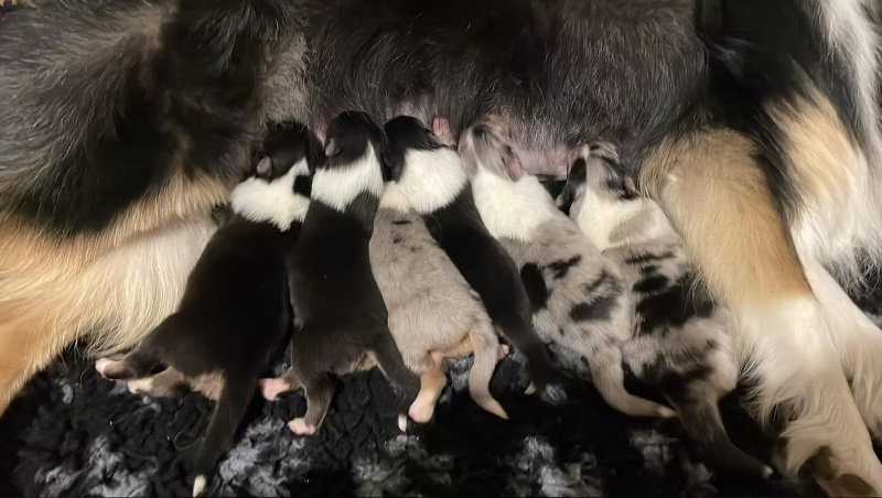 První Thorvinky pravnoučátka jsou na světě! Dne 7.4.2025 se v chovatelské stanici Ever After narodilo 7 štěňátek (dvě trikolorní a dvě zlaté fenky, tři trikolorní pejsci). Otcem štěňátek je Joker Ever After, který je syn Thorvinky dcery Dragon in the Sky Niarra. Více informací o tomto vrhu naleznete zde.