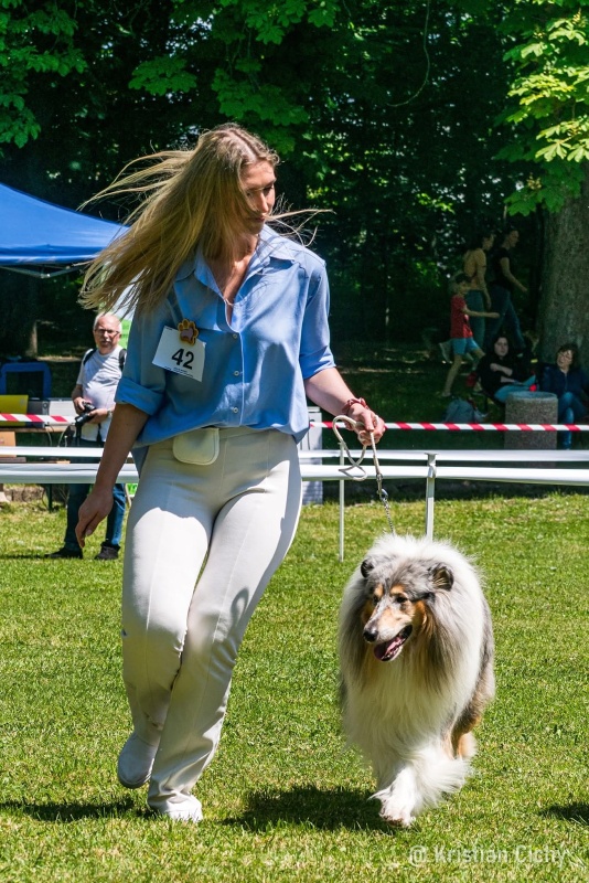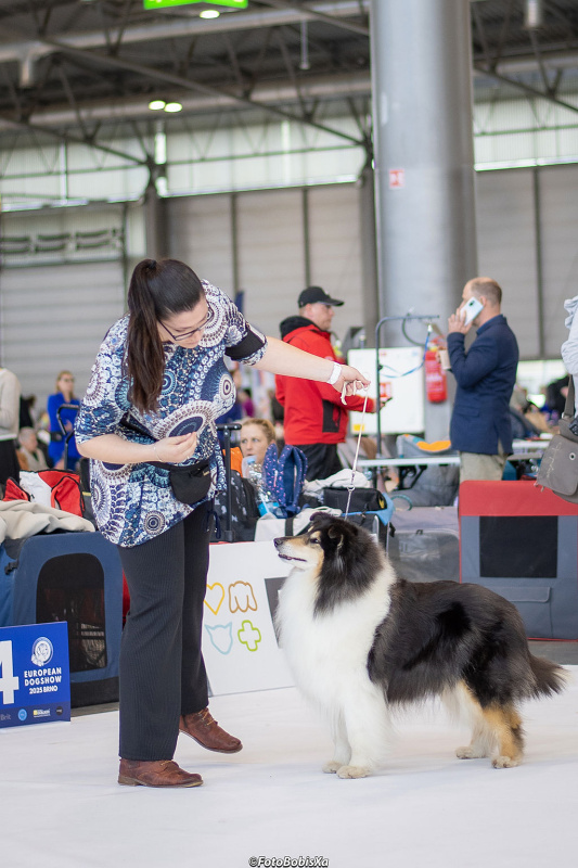 Ale teď už k samotným výstavám. Na evropské výstavě se kolie posuzovali hned první den konání, tedy ve čtvrtek 10.4.2025. Na národní výstavě při EDS byli kolie posuzovány hned následující den. Kolie na evropské výstavě posuzoval specialista z Německa Claus-Peter Fricke (chs. Rosegarden). Orin i Thorvi byli nahlášeni do třídy šampionů a konkurence byla veliká - 10 šampionů a 5 šampionek z česka i ze zahraničí. Na národní výstavě posuzovala švýcarská paní rozhodčí Barbara Müller.